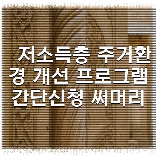 이제 우리가 함께 알아볼 주제는 '저소득층 주거환경 개선 프로그램'입니다. 이 프로그램은 저소득 가구를 위한 주거환경을 개선하기 위한 꿀 기회를 제공하고 있습니다. 이제 이 프로그램에 대한 자세한 내용을 알아보겠습니다.