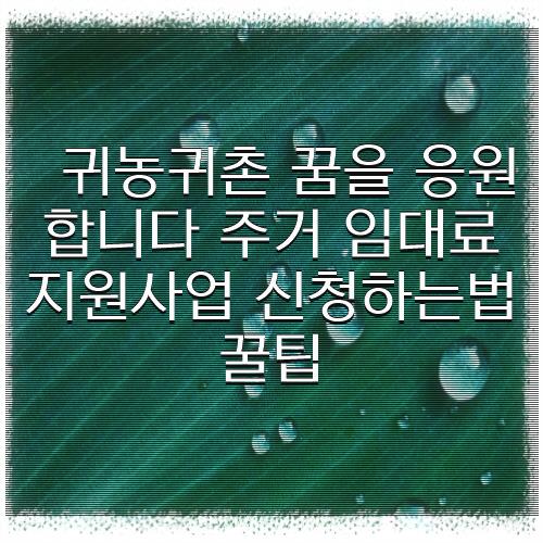 귀농귀촌 꿈을 응원합니다 주거 임대료 지원사업 신청하는법 꿀팁